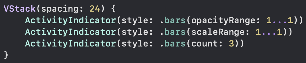 iActivityIndicator(style: .bars(opacityRange: 1…1))